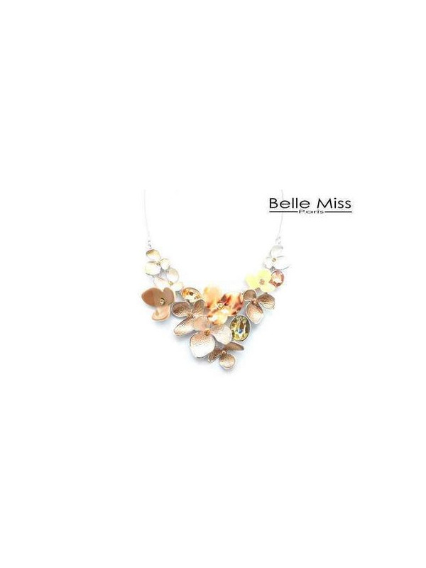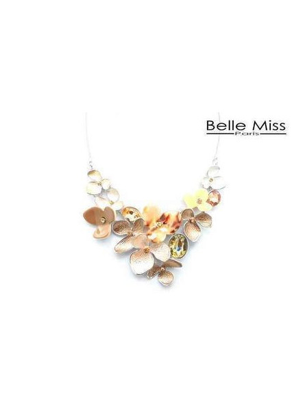 Collier fantaisie fleurs roses beiges