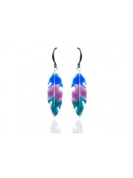 Boucles d'oreilles IKITA plumes émail bleu violet