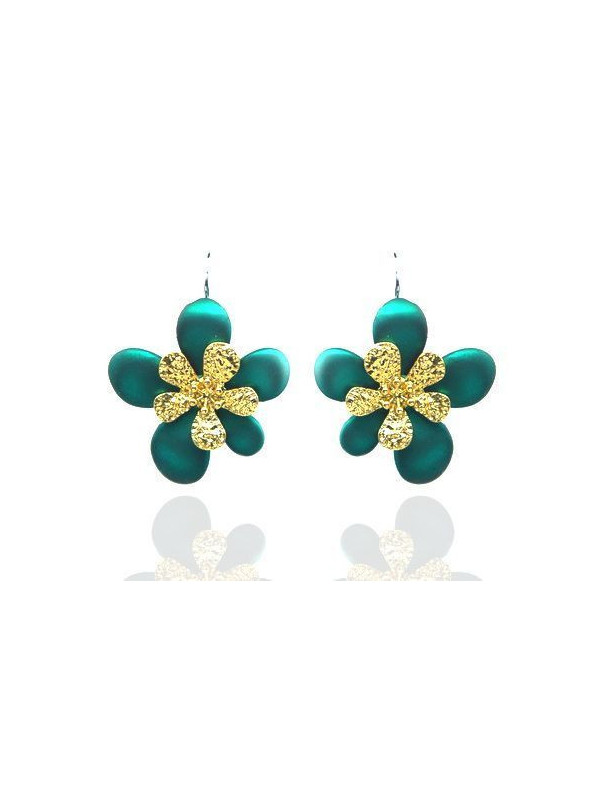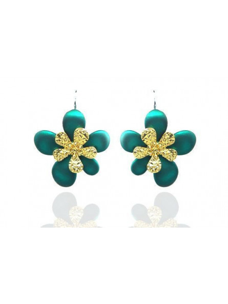Boucles d'oreilles IKITA fleurs vertes dorées