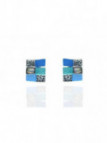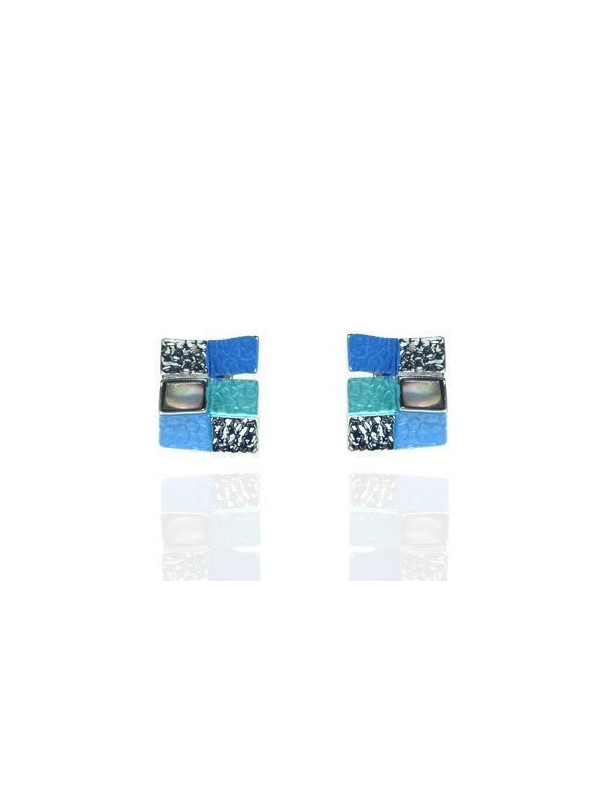 Boucles d'oreilles IKITA cadres bleu vert argenté