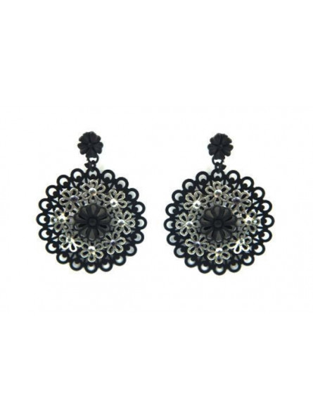 Boucles d'oreilles IKITA rosaces noir argenté