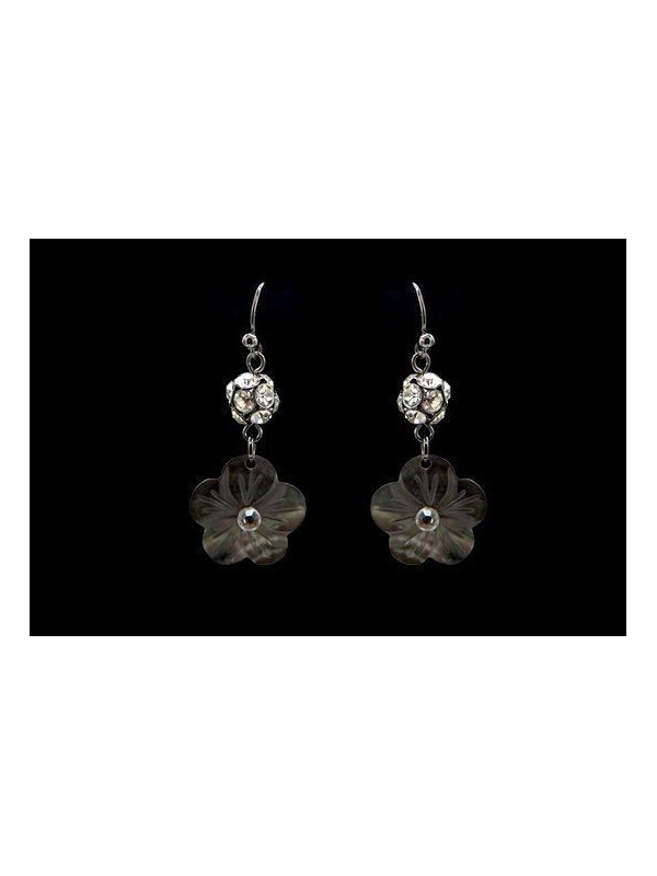 Boucles d'oreilles IKITA boules strass blanc fleurs