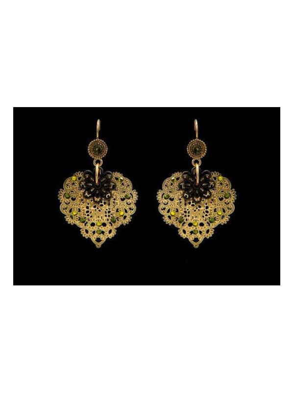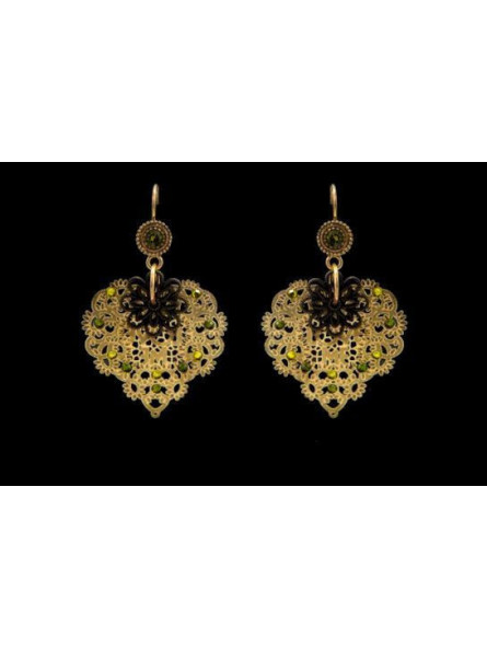 Boucles d’oreilles IKITA coeurs dorées strass vert jaune