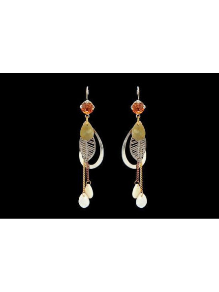 Boucles d’oreilles IKITA gouttes feuilles argent chainettes