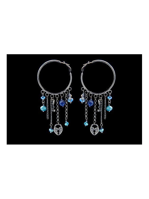 Boucles d’oreilles IKITA anneaux anthracites chainettes perles