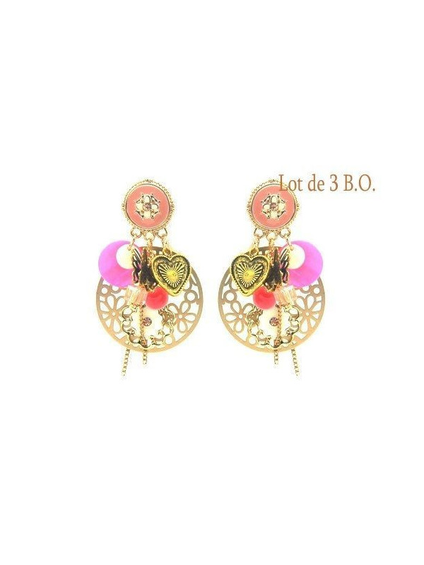 Boucles d'oreilles Ikita plateaux dorés ajourés motifs cœurs pendants x 3 pcs