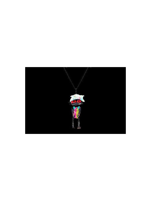 Collier sautoir chat pirate noir arc en ciel