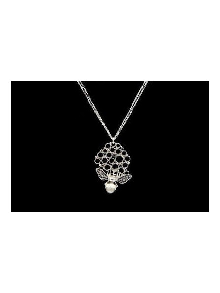 Collier sautoir ruche abeille argentée strass