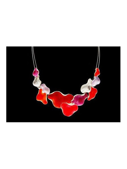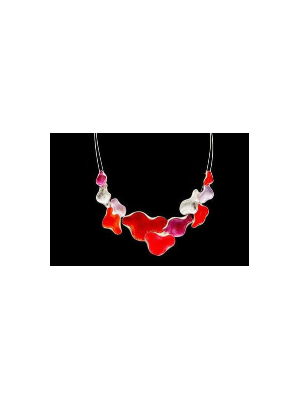 Collier IKITA nuages émail camaieu rouge cables