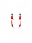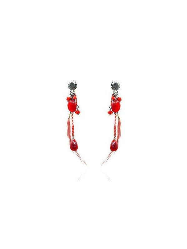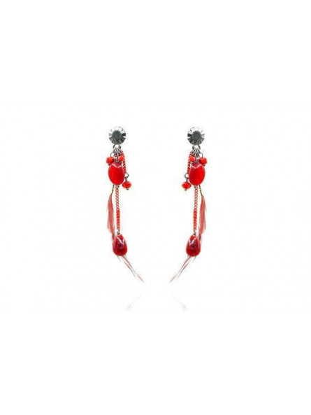 Boucles d'oreilles IKITA perles chainettes plumes rouges