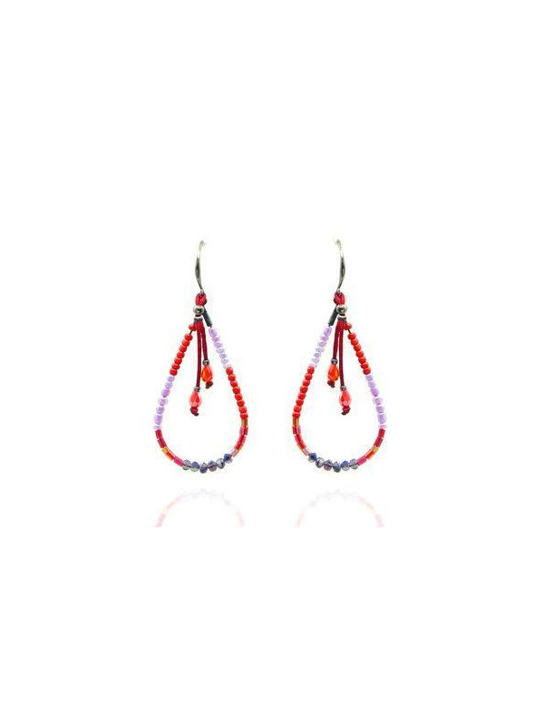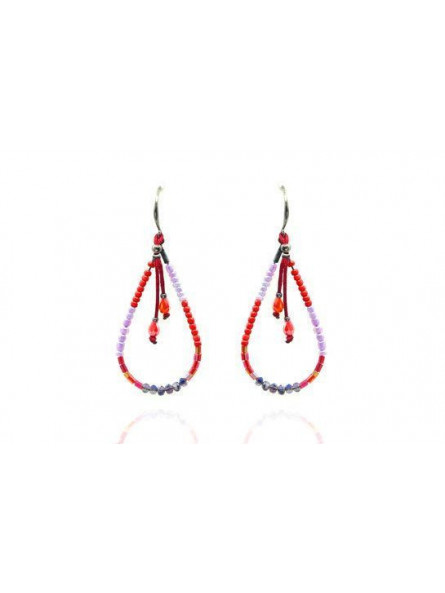 Boucles d'oreilles IKITA gouttes perles camaieu rouge