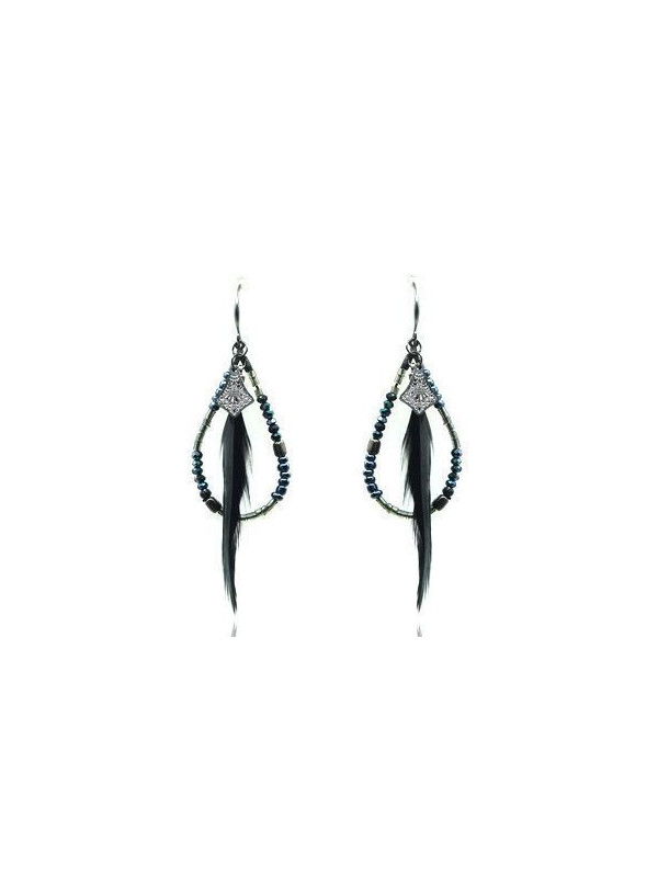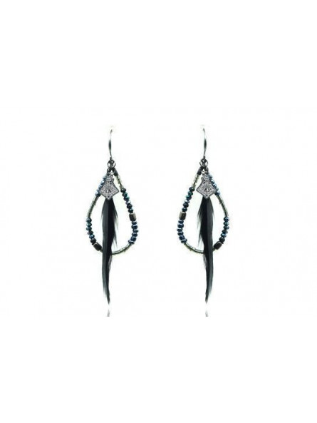 Boucles d'oreilles IKITA perles anthracites plumes