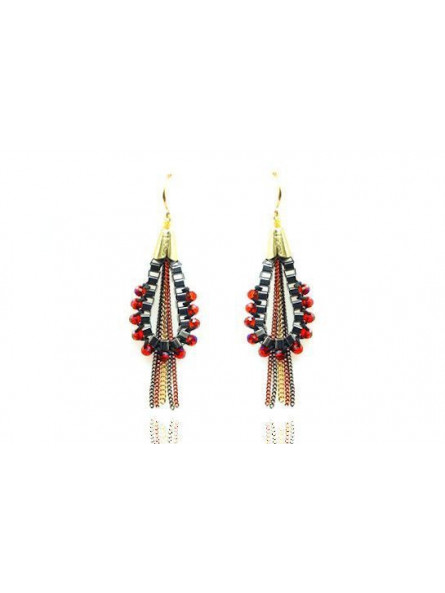 Boucles d'oreilles IKITA gouttes strass rouges chainettes