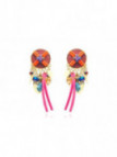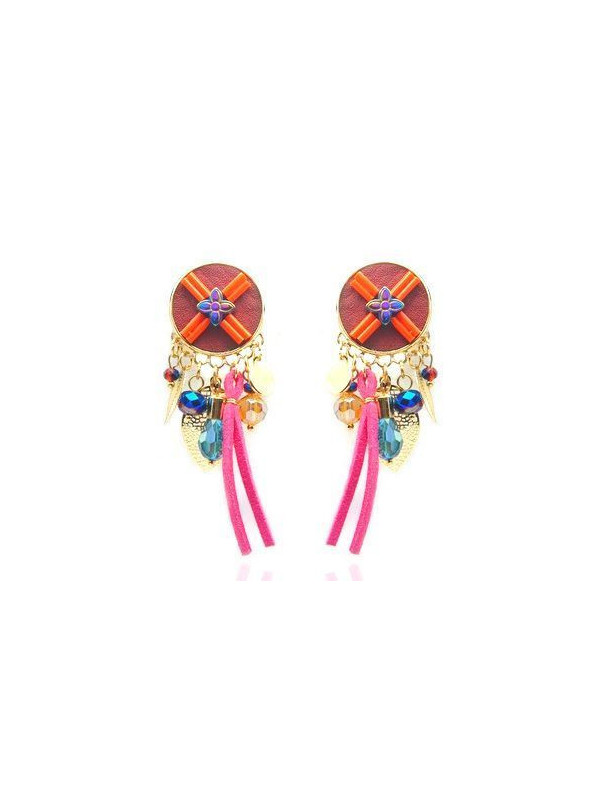 Boucles d'oreilles IKITA ronds marron perles noeud feutrine