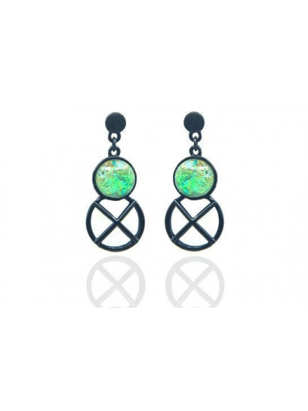 Boucles d'oreilles IKITA métal noir bulles vertes