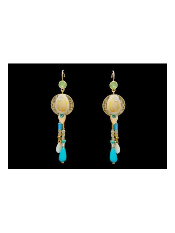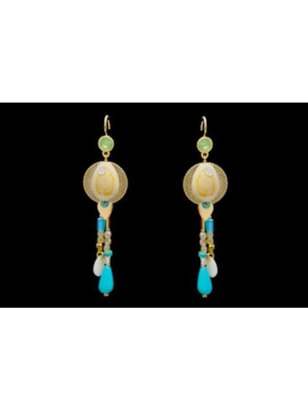 Boucles d'oreilles IKITA dorées coquillages perles bleu