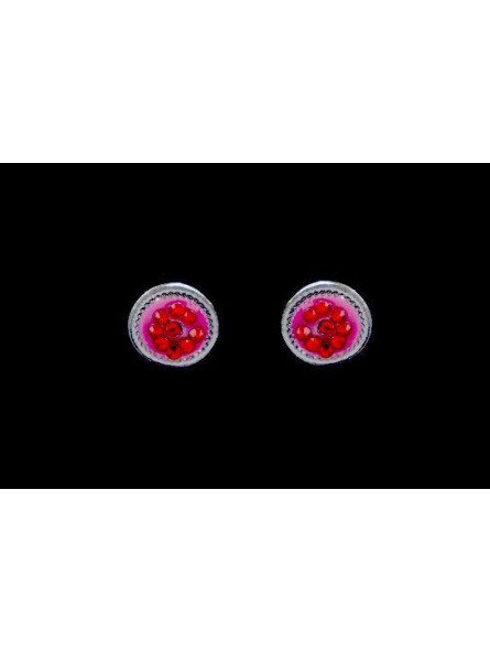 Boucles d'oreilles IKITA argentées rose strass rouge