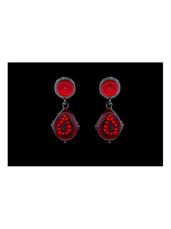 Boucles d’oreilles IKITA gouttes émail strass rouges