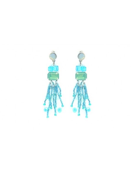 Boucles d'oreilles Ikita pierres rectangles lianes perles turquoises