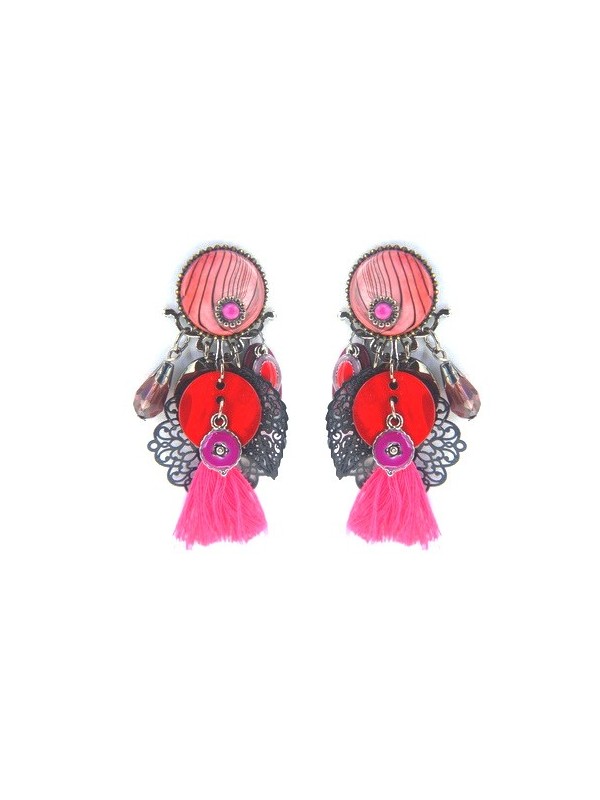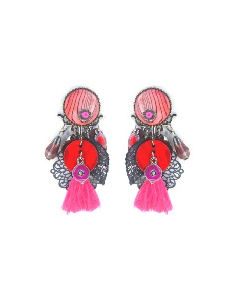 Boucles d'oreilles Ikita rondeurs striées pompons rose