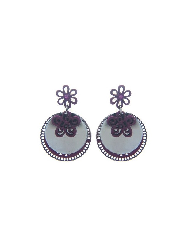 Boucles d'oreilles Ikita disques métal fleurs prune