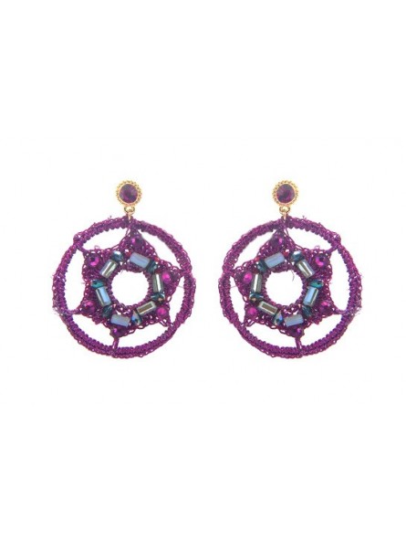 Boucles d'oreilles Ikita anneaux tresses violets étoiles