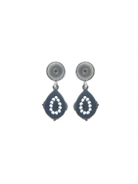 Boucles d'oreilles Ikita ronds gris gouttes noires strass