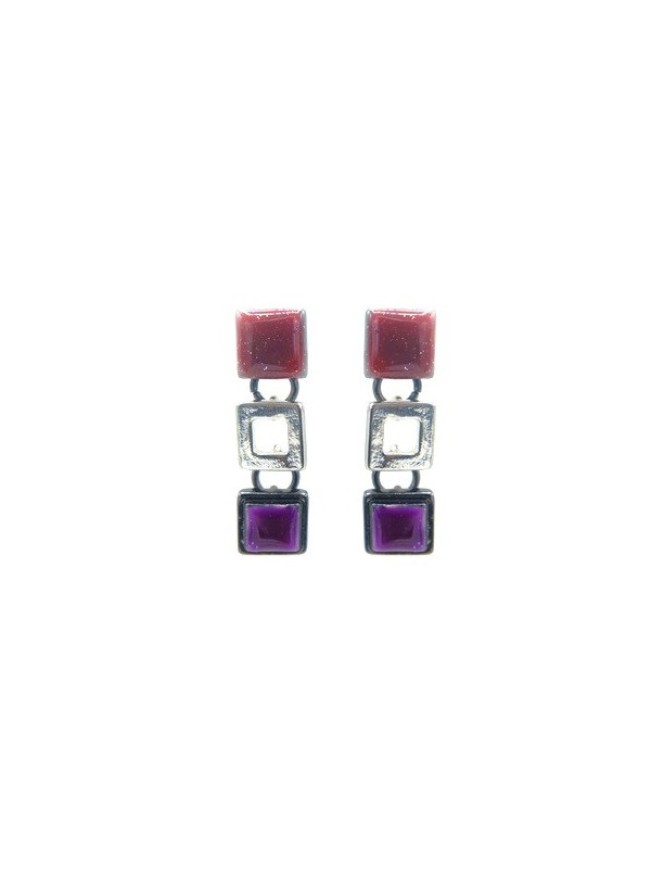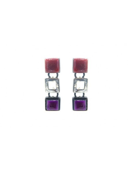 Boucles d'oreilles Ikita trio carreaux métal émail