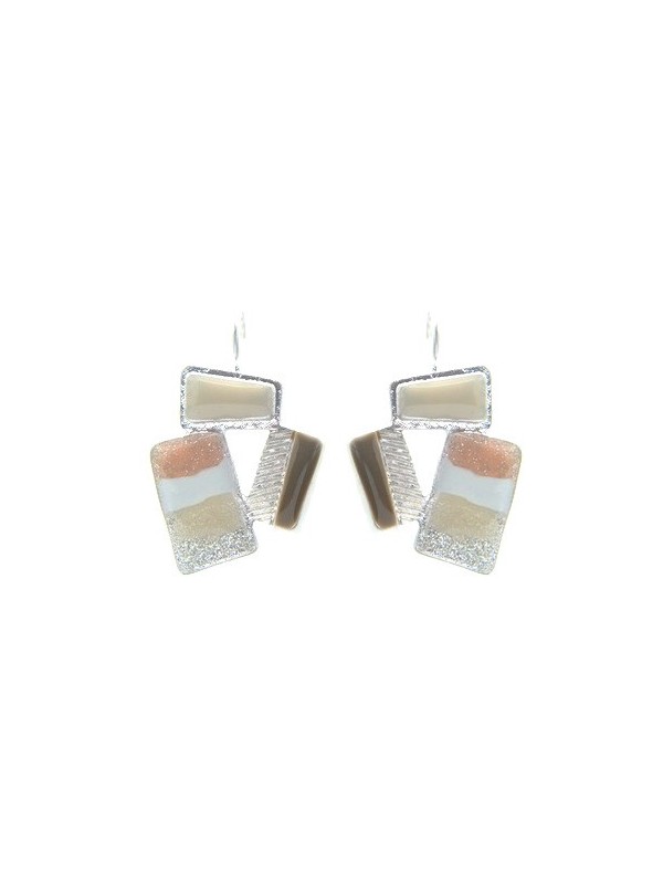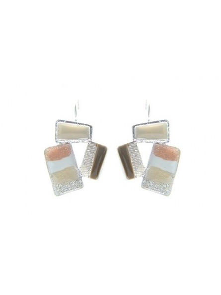 Boucles d'oreilles Ikita rectangles émail beiges