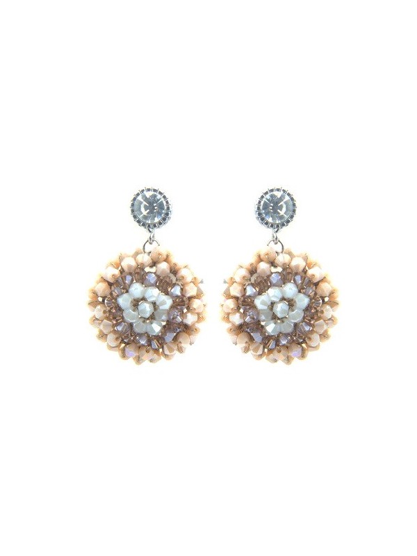 Boucles d'oreilles Ikita dôme beige perles et strass