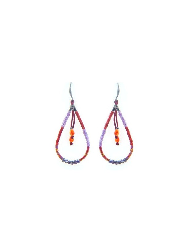 Boucles d'oreilles Ikita gouttes perles rouges rose