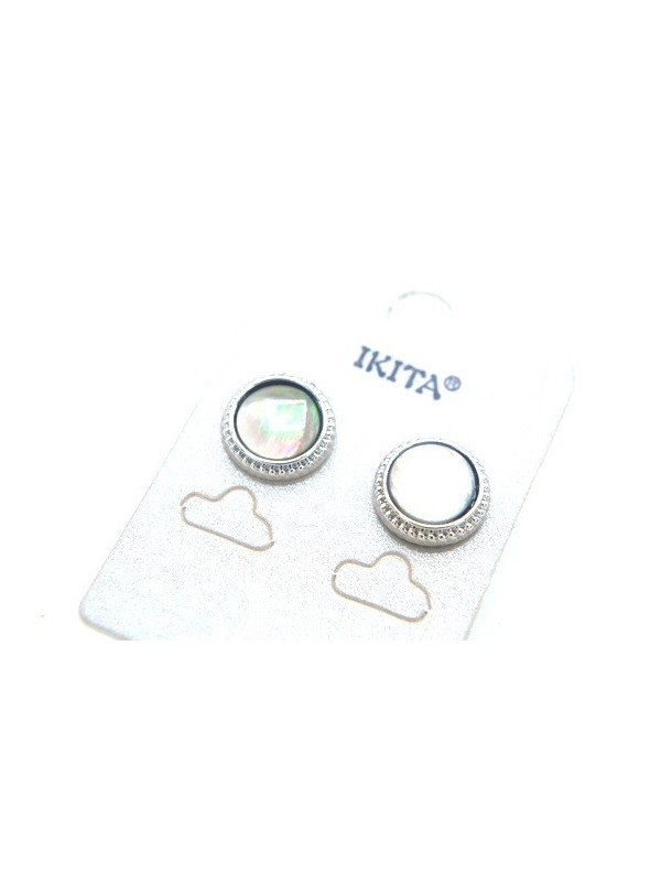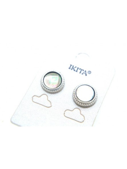 Boucles d'oreilles Ikita boutons nacre auréole argentée