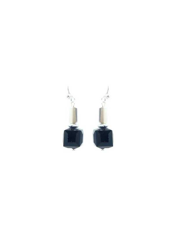 Boucles d'oreilles Ikita perles cubes noirs