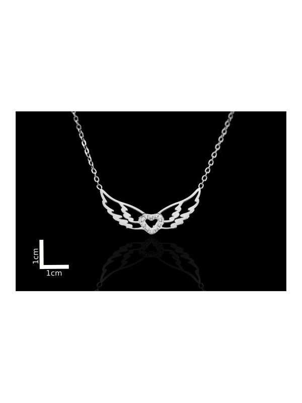 Collier acier inoxydable ailes argentées cœur strass