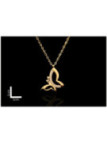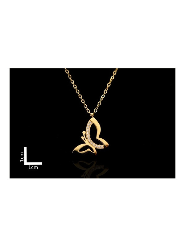 Collier acier inoxydable papillon doré arc strass. Papillon doré souligné d'un arc de strass scintillants. Ce collier poétique semble prêt à s'envoler à chaque mouvement.