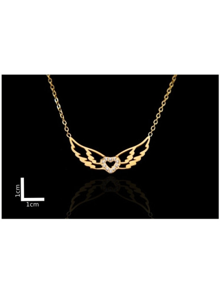 Collier acier inoxydable ailes dorées cœur strass