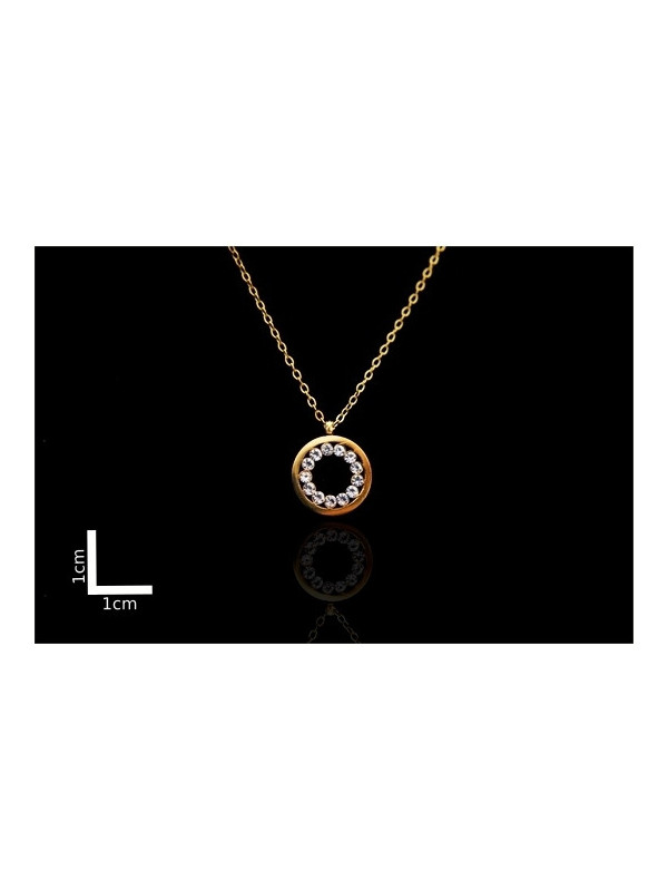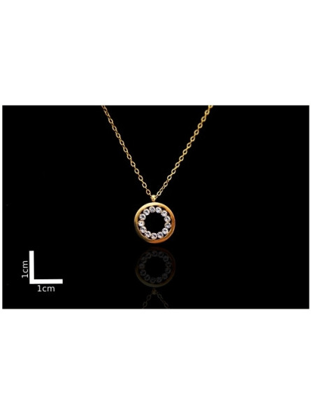 Collier acier inoxydable anneau auréole strass. Anneau doré mis en valeur par une auréole de strass scintillants. Ce pendentif minimaliste joue avec la lumière avec sophistication.