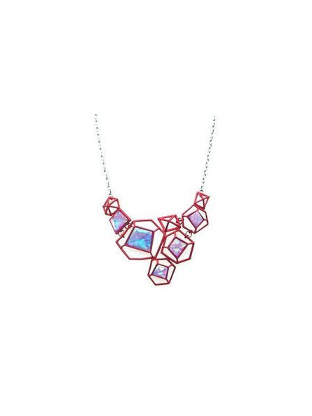 Collier IKITA métal rouges pierres reflets