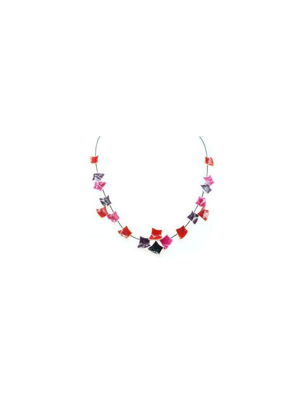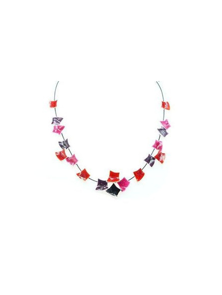Collier IKITA carreaux courbes émail rose rouge