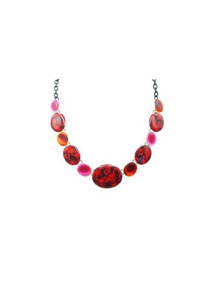 Collier IKITA ellipses émail rouge motifs