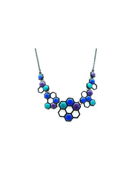 Collier IKITA nid abeille émail bleu ajouré
