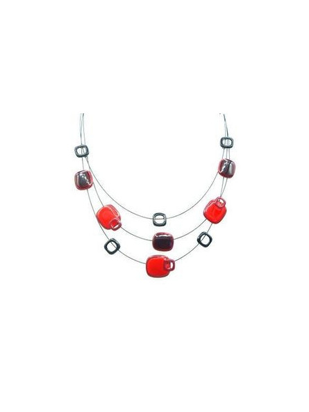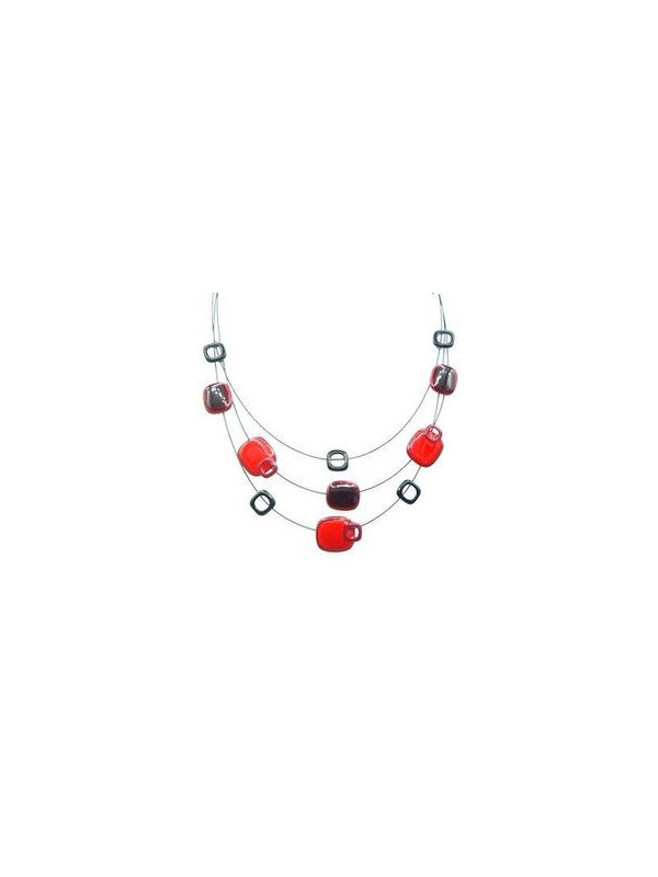 Collier IKITA multi rangs carreaux émail rouges